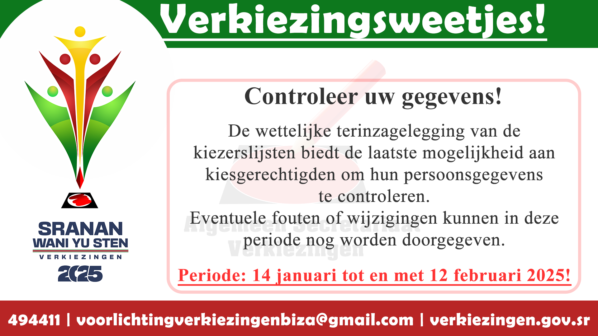 Verkiezingsweetjes! Controleer uw gegevens.